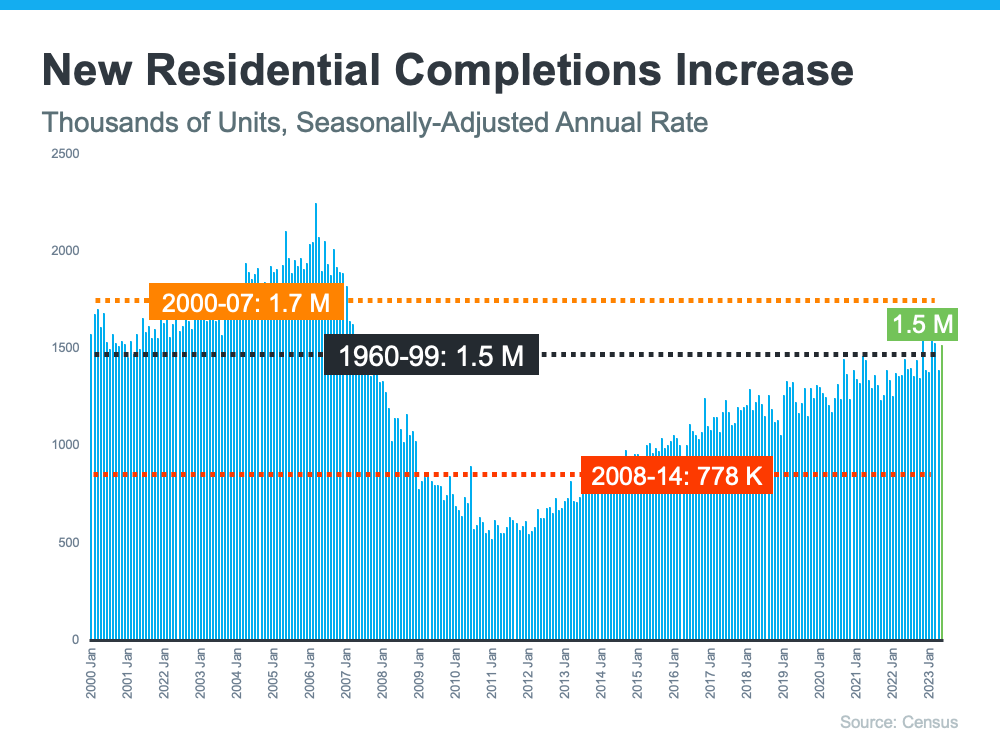 A key metric shows how much new home construction is ramping up nationwide. It’s called new residential completions. Basically, completions are newly built homes that are finished and ready to move into.